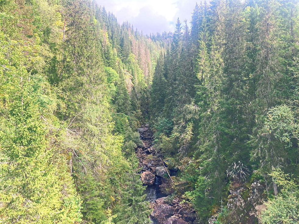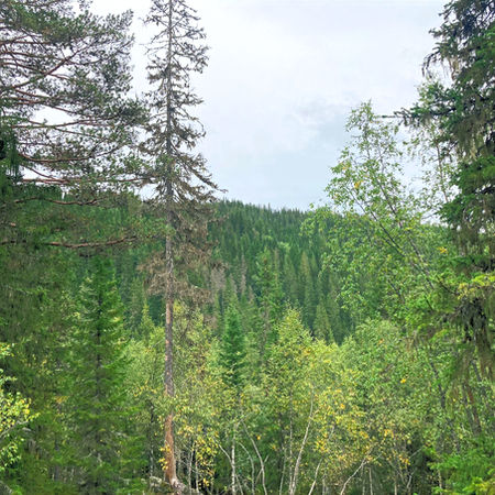 The forest at Vehusnuten is dominated by mature spruce, with interspersed deciduous trees and a rich understory. While much of the surrounding region is actively harvested, the remaining forests are characterized by large, old trees, diverse structures, and natural transitions between forest, streams, and slopes. Forests of this kind are particularly important habitats for a wide range of species – and among the most effective natural carbon stores on land.